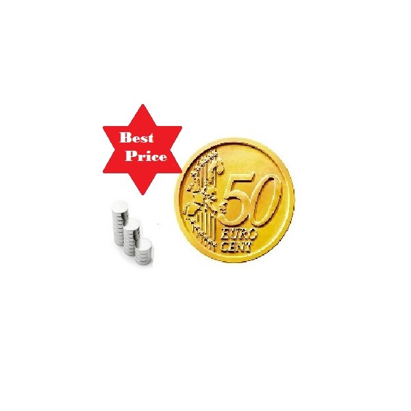 Disco magnetico, Ø 3mm altezza 1 mm, NdFeB, N48, nichelato, forza di attrazione ca 210 g, temperatura massima di esercizio 80°, peso 0,054 g. ORDINE MINIMO 20 PEZZI
