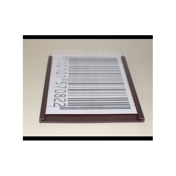 Porta cartellino magnetico profilo "C" già tagliato. Lunghezza 150 mm, altezza 20 mm, completo di cartoncino bianco e PVC trasparente. ORDINE MINIMO 150 PEZZI