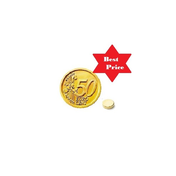 Disco magnetico, Ø 6 mm altezza 2 mm, NdFeB, N45, nichelato. ORDINE MINIMO 15 PEZZI